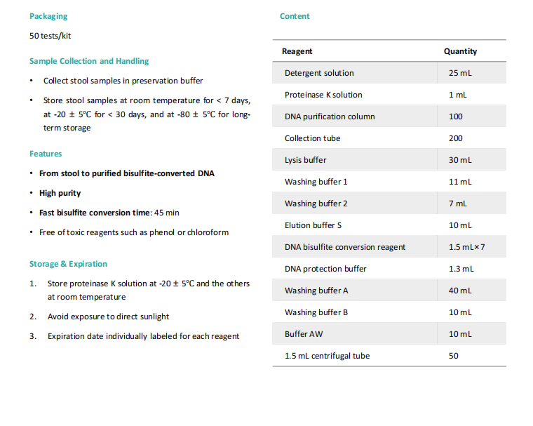 Stool DNA Extraction, Bisulfite-conversion and Purification Kit (Column) VRSBZ050-00